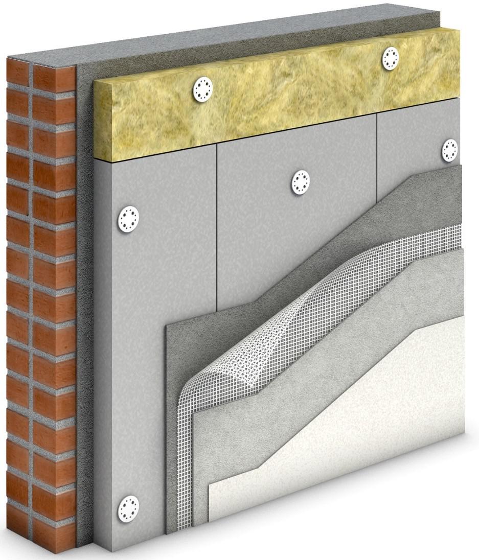 Изоляционные плиты, степень плотности которых должна быть не менее П-75 для зданий высотой до 12 м (1-4 этажа) и не менее П-120 для конструкций высотой более 12 м (5 и более этажей). устанавливается между элементами каркаса и крепится дюбелями с широкими пластиковыми заглушками.Для зданий высотой до 12 м каждая изоляционная плита крепится двумя дюбелями, для зданий выше 12 м изоляционная плита крепится четырьмя дюбелями.