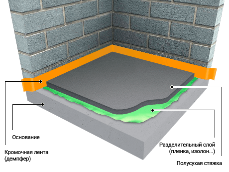 Поскольку в этом случае будет использоваться мокрая стяжка, последовательность укладки составляющих материалов будет несколько иной.