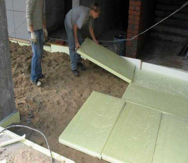 Ввиду больших нагрузок и возможности просадки в полах по грунту применяется ЭППС высокой плотности, а не пенопласт ПСБ.