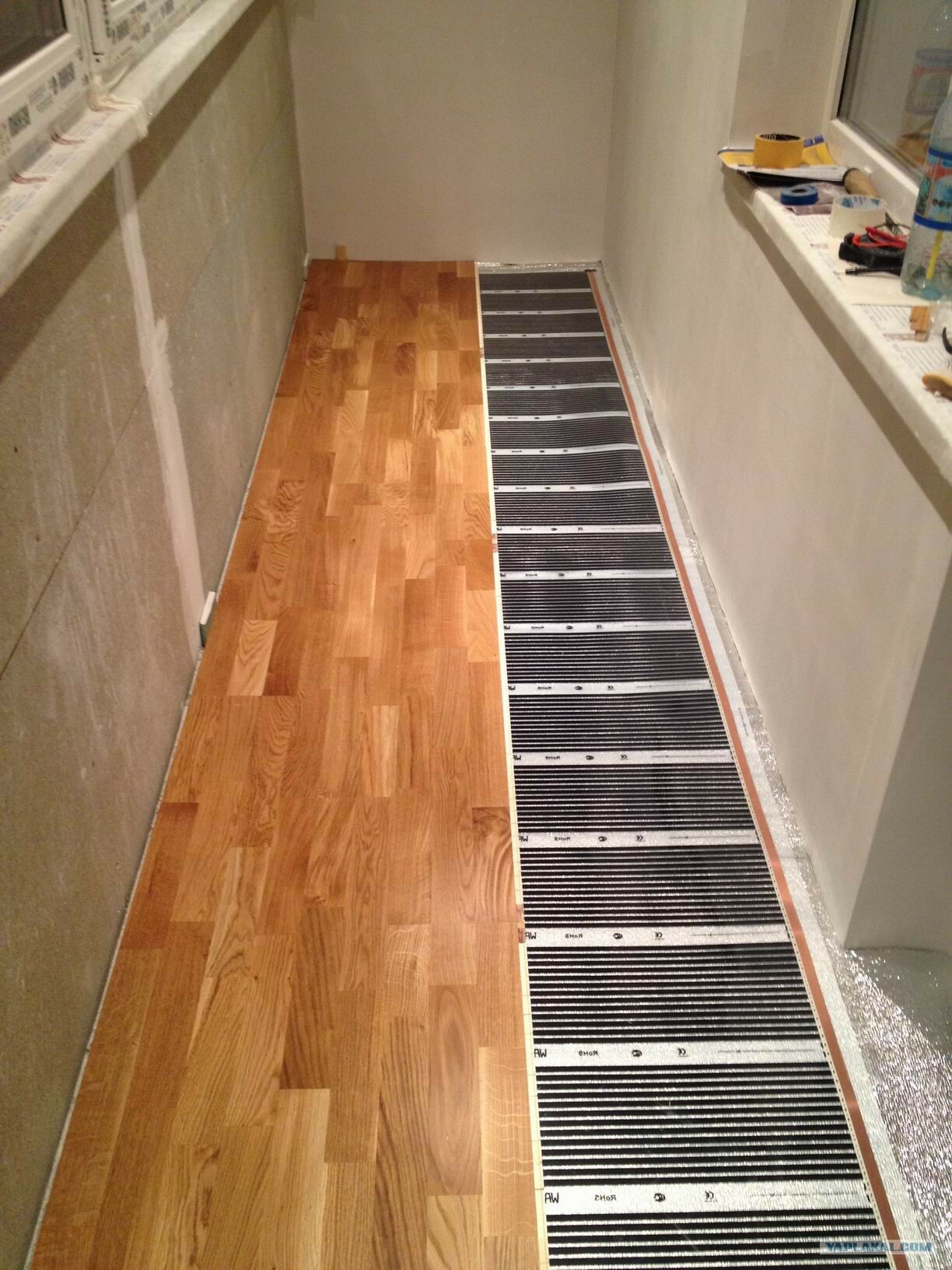 Полезный совет! В случае использования ламината или паркета на балконе инфракрасную пленку следует монтировать на меньшей площади.В этом случае пол не сможет просохнуть.
