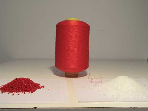 Фото – Красящий пигмент, порошок полимера РР и полученная из него пряжа