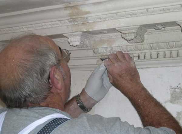 - Монтировать лепнину из гипса достаточно сложно. Для этого необходимы определенные навыки, а также трудовые и временные затраты. Однако результат работы оправдывает все «мучения».