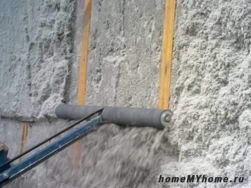 Влажный монтаж эковаты подходит для стен, оборудованных каркасом. Материал увлажняют водой и выдувают на плоскость, к которой он очень хорошо прилипнет и создаст утеплительный слой. Излишек материала необходимо срезать специальным роликом.