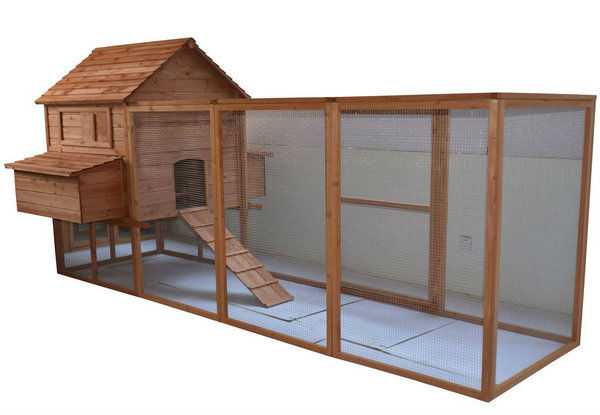 Эта модель отличается высоким выгулом для курочек. Хозяин легко может войти в вольер. Птицам будет очень удобно играть и размножаться в таком пространстве. С богу имеется лоток для уборки мусора, который делается из гладкой стали. Очень удобно, когда лоток на уровне рук. Это позволяет прочистить или проверить загрязнение курятника, лишний раз не наклоняясь. Так же здесь предусмотрены гнезда для яиц, которые так же расположены на уровне рук.