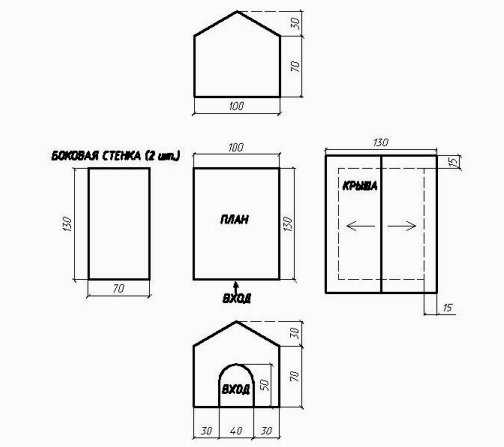 Большое значение для сохранения тепла имеет правильное расположение будки. Ее располагают в сухом месте, защищенном от холодных ветров.