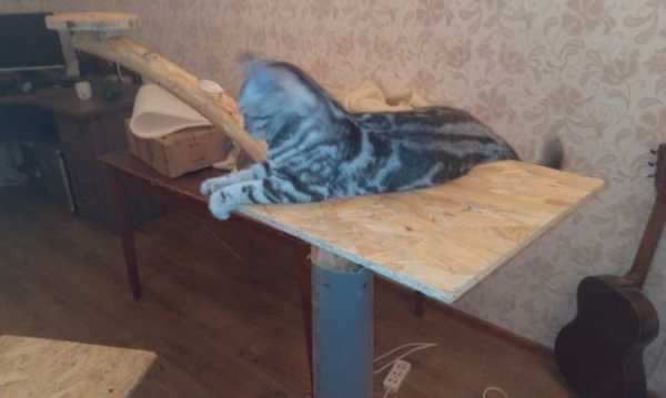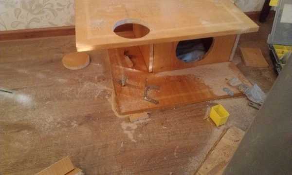 Кошки по достоинству оценят большие конструкции, обустроенные из мебели. В этом случае для домика выделяют тумбочку или закрытый стол, подготавливая для питомца удобный вход. Внутри делают мягкую обивку, а верх используют для собственных нужд. Иногда и крышка мебели служит лежанкой для домашнего животного, если оснастить ее подходящим матрасом.