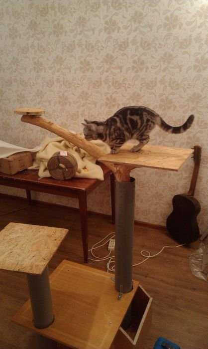 - Сохранить устойчивость подставок, где будет с удовольствием лежать кошка, также помогут металлические трубы. Они же используются для целых комплексов.