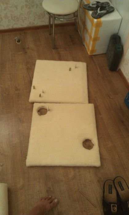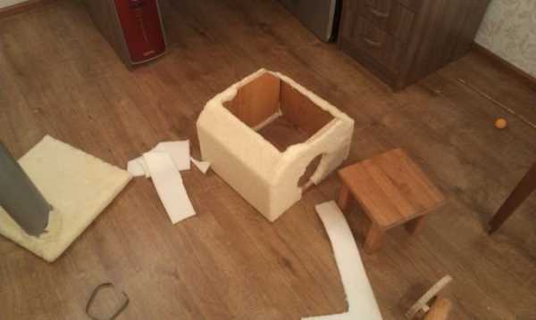 Внимание! Если выбран способ приклеивания, материал подбирается без едкого запаха, иначе домик отпугнет кошку.