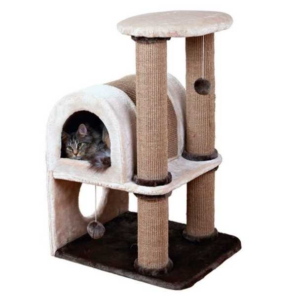 - Большинство кошек предпочитают наблюдать за окружающей обстановкой свысока, поэтому лучше разместить домик на возвышенности для лучшего обзора. В случае заботливой мамы кошки подойдут многоярусные домики, где есть возможность укрыться от посторонних взоров и при желании иметь дополнительную лежанку. Интересный домик для кошки описанной модели изображен на следующем фото: