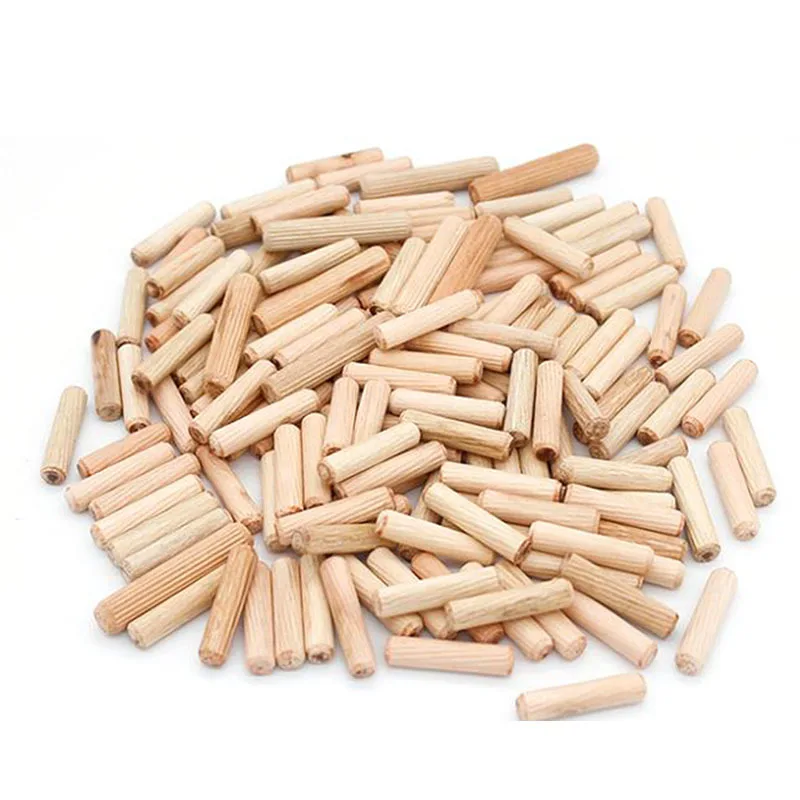 Деревянные штифты для штифтов имеют скошенную головку для облегчения вставки и могут иметь канавки или канавки для улучшения вставки и клеевого соединения.