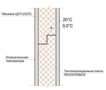 | Рис. 3. Точка росы (0 °С) в плитах в домах каркасного типа