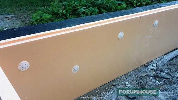 Закончив возведение фундамента, пользователь приступил к его утеплению (изнутри) экструзионным пенополистиролом в один слой.