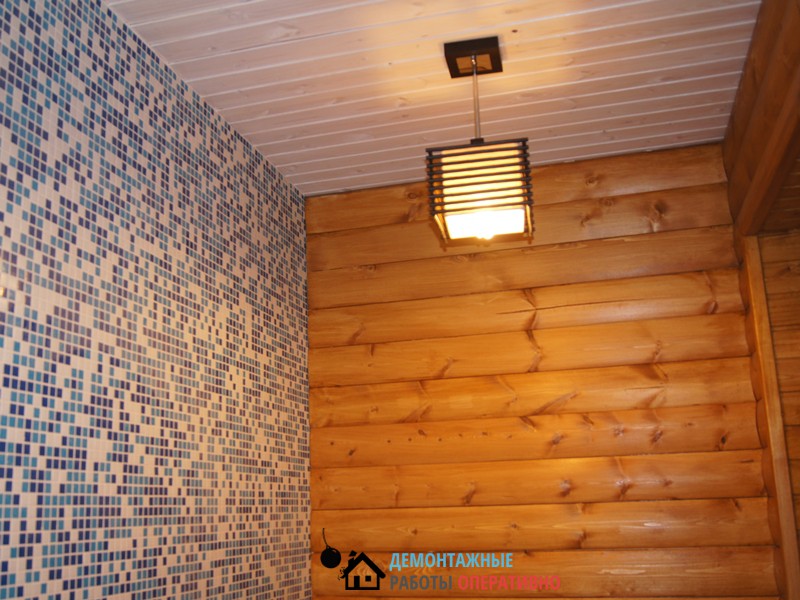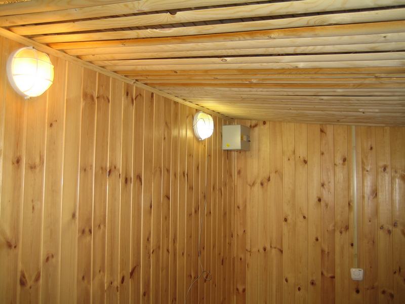 Идеальным вариантом обшивки, создающим нужный микроклимат внутри, является комбинация дерева (для стен) и плитки (для пола). Ламинат – не лучшее решение по облицовке.