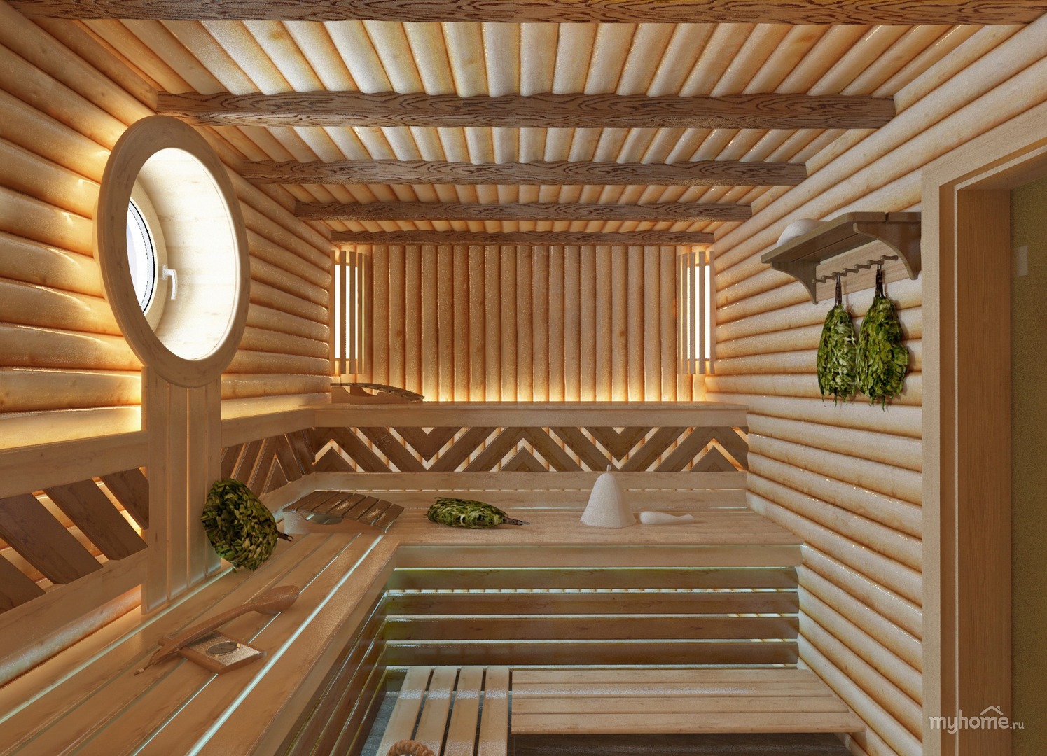 что это? Дизайн интерьера раздевалки в бане, отделка своими руками. Из чего лучше сделать пол и потолок внутри? Как обустроить?