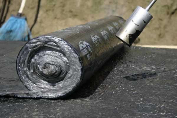 - После застывания на него устанавливают слой рулонной гидроизоляции.
