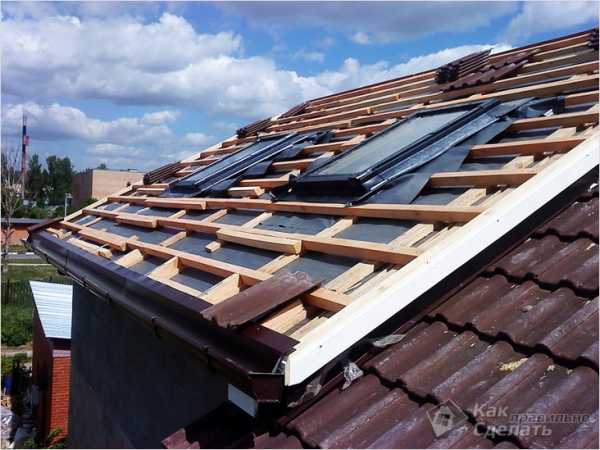 - В нижней части крыши установите неширокую обрешетку (2-3 доски) и капельник.