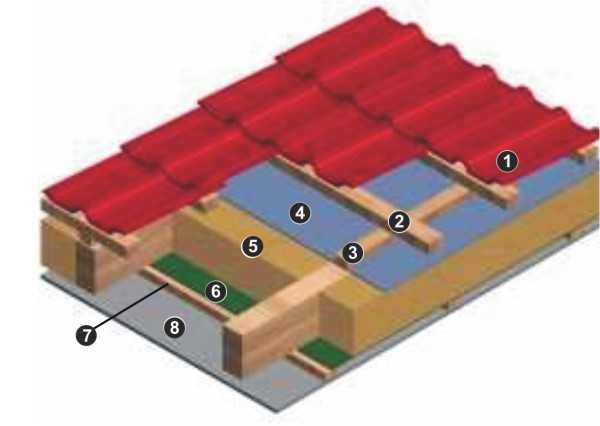 Описание всех элементов кровли, приведённых на фото, ниже, но почувствуйте главное золотое правило любого эффективного утепления – слоистость всей системы утепления