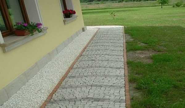 Устройство отмостки с отделкой тротуарной плиткой или брусчаткой