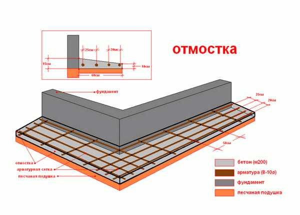 Конструкция отмостки готовая к заливке бетоном