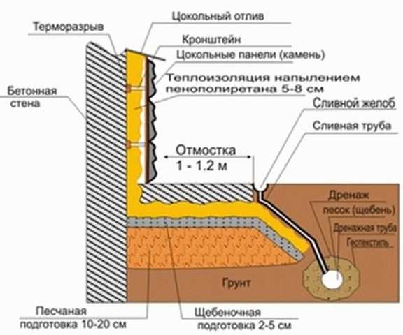 Утепление цоколя и отмостки вокруг дома: выбор материала, схема устройства
