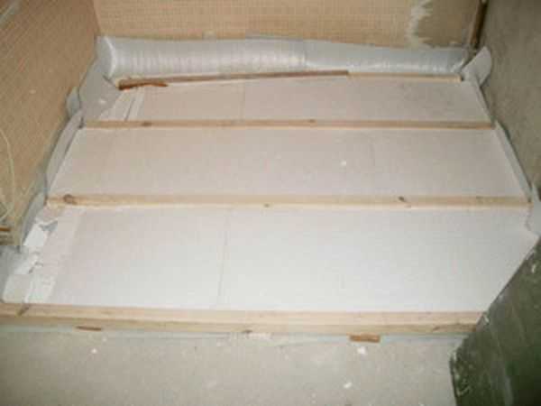 Здесь лучше использовать другой вид пенопласта – экструдированный пенополистирол. Этот материал прочнее своего родственника пенопласта. Следовательно, будет лучше выдерживать нагрузки. Одним из распространенных представителей этого вида является пеноплекс.