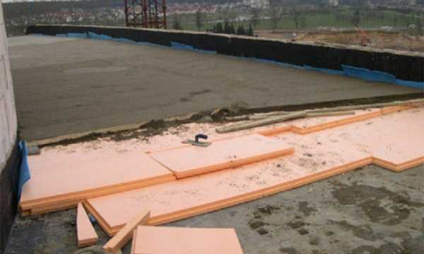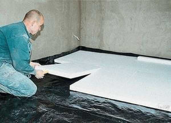 После подготовки бетонного основания утеплитель можно укладывать прям на него. Исключением будут перекрытия цокольных этажей и подвальных помещений, в этом случае сначала укладывается гидроизоляционная пленка, а потом плиты утеплителя.