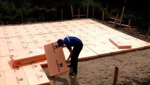 По краям строение огораживают листами рубероида или полиэтилена, сверху пеноплекс также покрывают этими материалами, затем на них монтируется слой цемента, и металлической сетки для его укрепления, при этом толщина стяжки должна быть пять сантиметров.