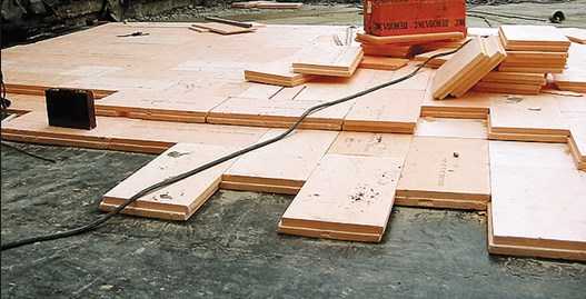 - Если материал укладывается между лагами, то он не испытывает нагрузки сооружения. Эта нагрузка равномерно распределяется между деревянными брусками.