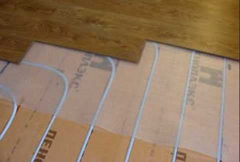 Если параллельно вы хотите установить и «теплый пол», то пеноплекс для теплого пола монтируются, как непосредственно в цементную стяжку, так и в слой утеплителя, в котором вырезаются необходимые отверстия.