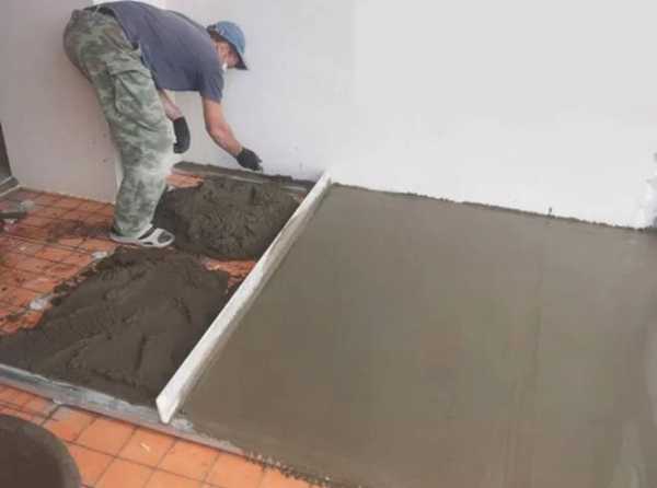 В начале, удаляется старое напольное покрытие, затем производится выравнивание бетонной стяжки и после этого приступают к монтажу утеплителя в данном случае пеноплекса. Важно помнить, что работу по выполнению цементной стяжки всегда производятся в теплую погоду.