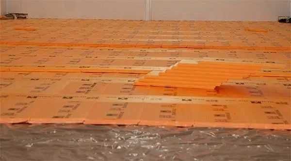 После проверки работы электрической части элементов или водяных труб приступают к укладке цементной стяжки, после окончательного затвердевания последней приступают к укладке напольного покрытия.