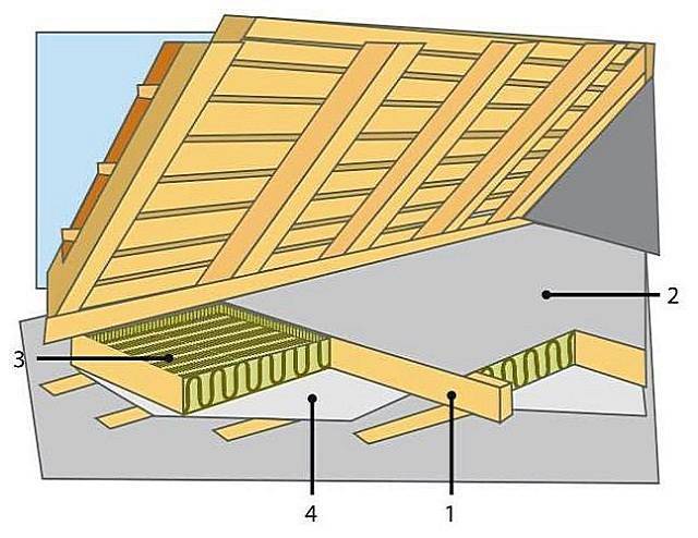 - Гидро- паро-изоляция обязательный пункт при утеплении потолка. Если материал повержен воздействию влаги, то изоляционный слой укладывают с обеих сторон.
