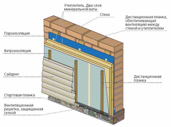 Структура вентилируемого фасада с облицовкой сайдингом.