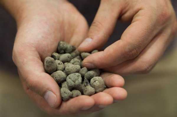 Процесс его производства выглядит следующим образом. Все начинается с загрузки сырья в большие металлические печи-барабаны, диаметр которых находится в пределах от 2 до 5 м, а длина может достигать 70 м. Данные печи специально устанавливаются как правило под углом около 30º. Глиняные гранулы засыпаются сверху. Дальше они под воздействием сил тяжести проходят путь от верхнего конца барабана до нижнего, где расположены газовые горелки. Такая сложность в выгрузке нужна для постепенного нагрева и высушивания гранул. Так как в противном случае при быстром нагреве, гранулы глины могут потрескаться или разрушиться. Время пребывания исходного элемента в печи около 45 минут. Все, керамзит готов.