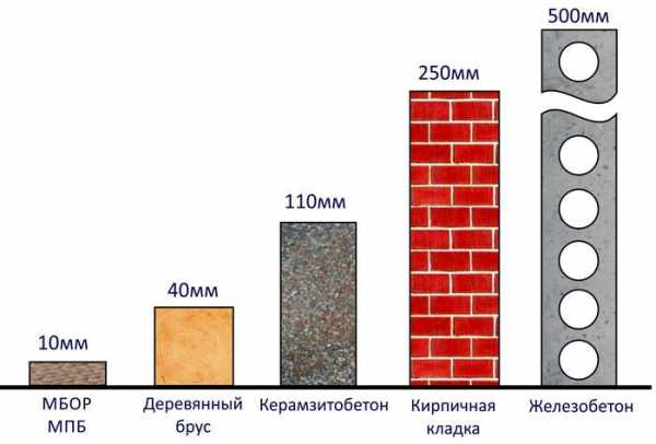 Рассмотрим несколько часто используемых строительных материалов и проведем сравнение их теплопроводность по толщине.
