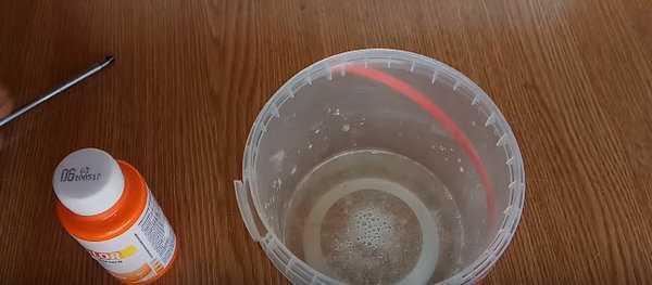 Наливаем ксилол в пластиковую емкость. Добавляем не нужные куски пенопласта. Лучше работать в перчатках.