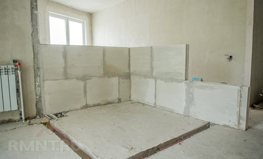 Такой способ строительства перегородок допускается использовать на полах, которые не деформируются, не дают усадки, в сейсмически не активных регионах.