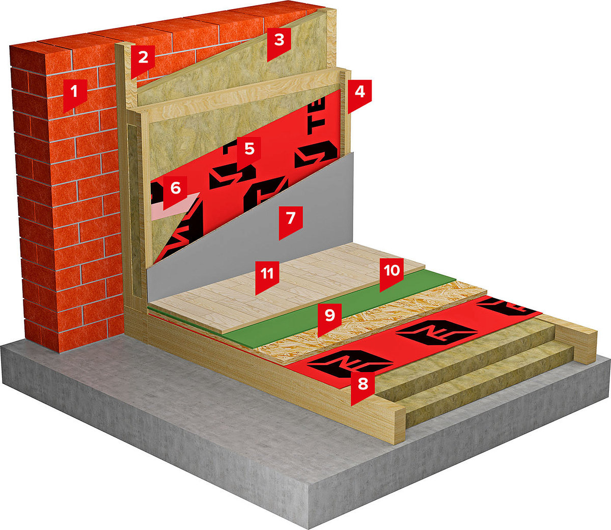 В отличие от пенопласта, минвата не горит абсолютно, зато способна впитывать влагу, после чего ее теплопроводность резко повышается. Проблема решается с помощью защитных слоев из специальных пленок, о чем будет сказано далее.