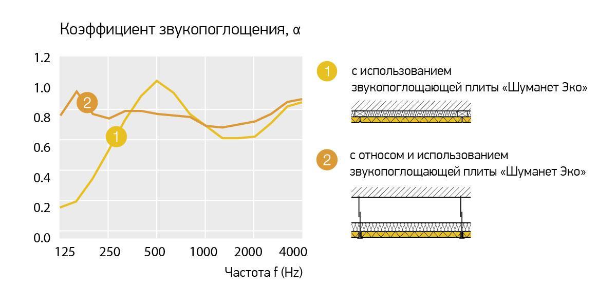 Наибольший акустический эффект от звукопоглощения наблюдается в зоне отраженного звука. В точках помещения, где преобладает прямой звук, эффективность звукопоглощения существенно снижается.