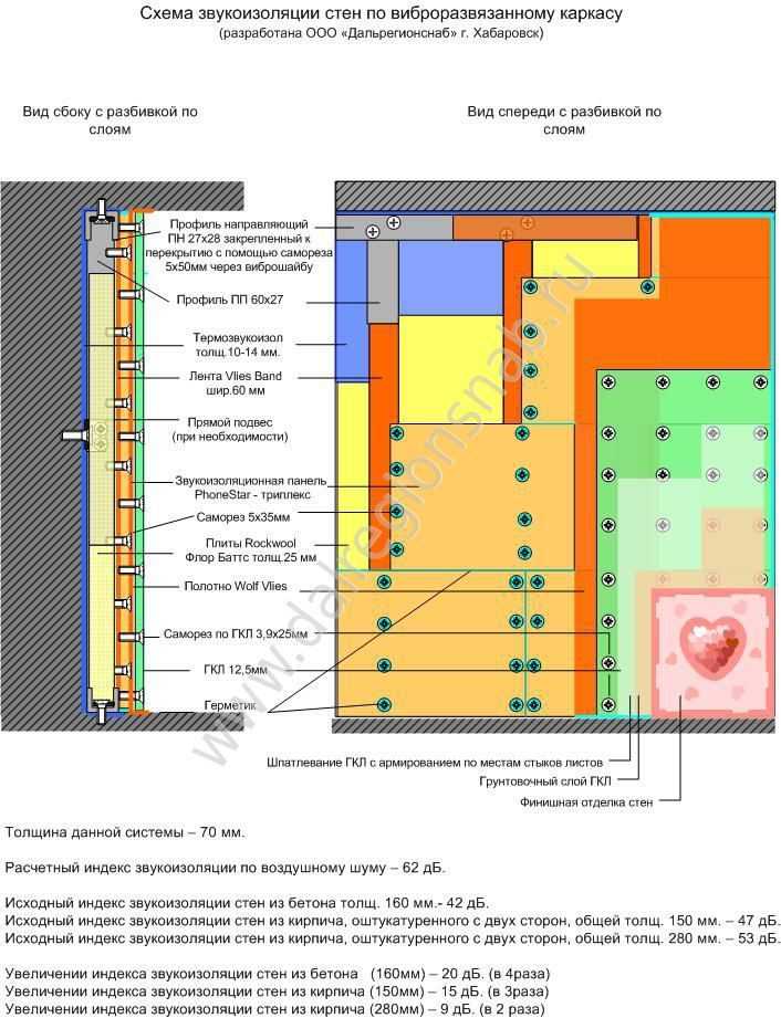 5.3. Дополнительная звукоизолирующая способность слоя звукопоглощающего материала для различных линейных размеров стенки: