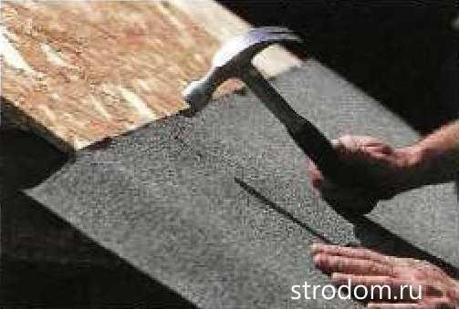 Как правило, крыша сарая покрыта одним слоем рубероида, однако при условии довольно щедрой нахлестки (напуска одного слоя рубероида на другой) она не должна пропускать дождевую воду. Первое действие при ремонте — снятие старого рубероида и удаление всех ненужных гвоздей.