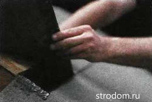![]() | Сделайте гидроизоляцию углов, используя клей для рубероида. |