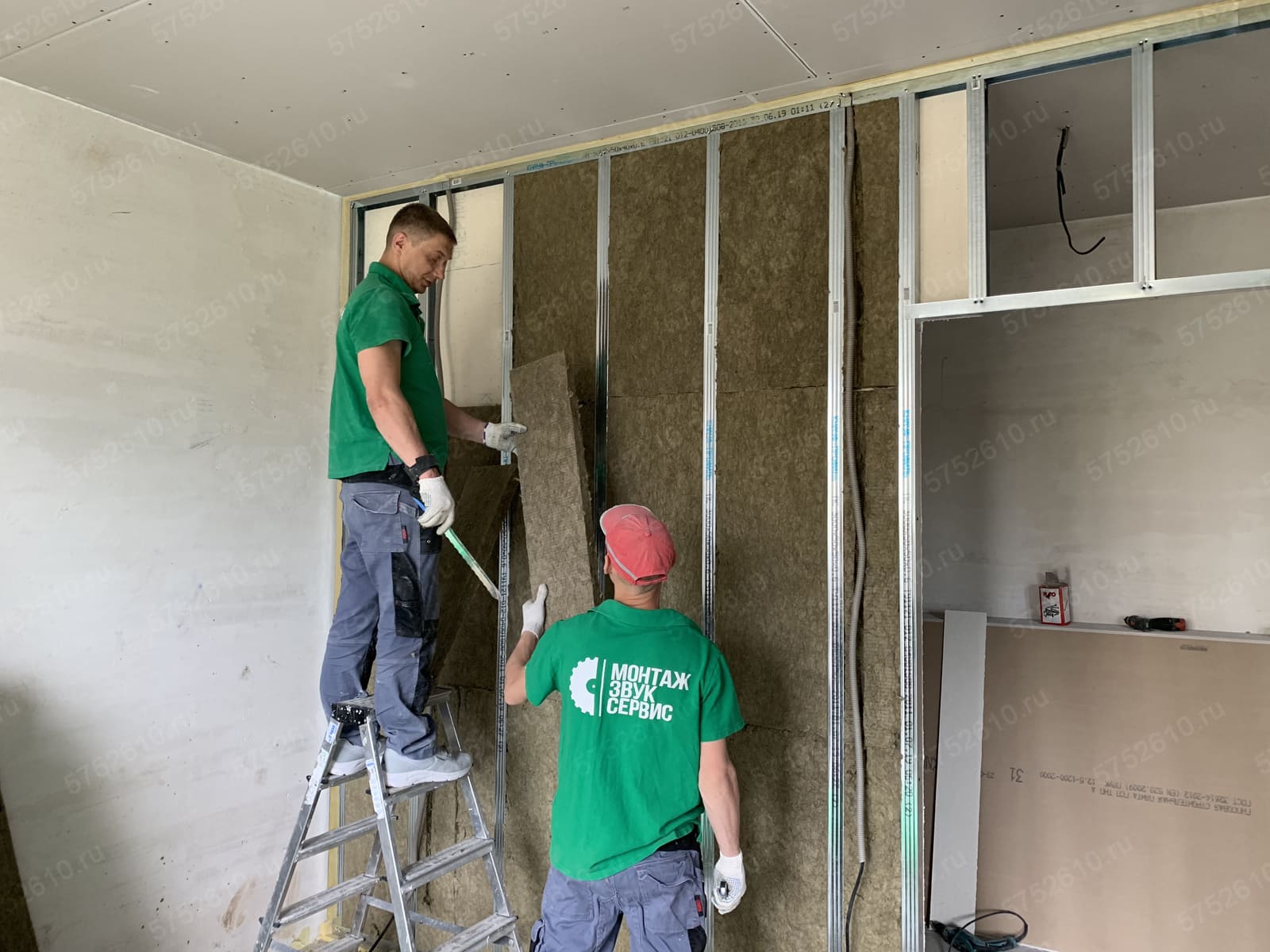 При таком виде борьбы с шумом важно научиться жить, не повреждая шумопоглотительные материалы. Конечно, можно использовать традиционную минвату или подобные материалы, но при этом помнить о ее небольшой эффективности при толщинах менее 100 мм (что существенно уменьшит площадь помещения) и необходимости монтажа каркаса на специальном крепеже или, на худой конец, с демпферной лентой.