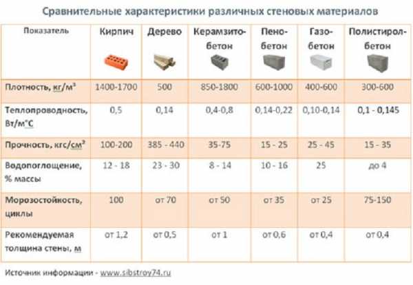 Таблица сравнительных характеристик строительных блоков.