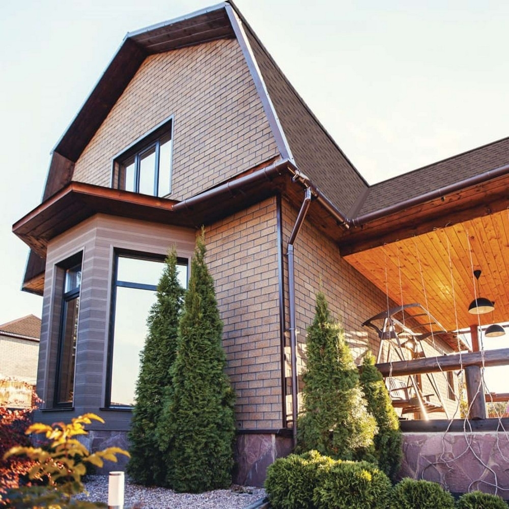 В качестве внешнего покрытия кровли используется многослойная гибкая черепица SHINGLAS.