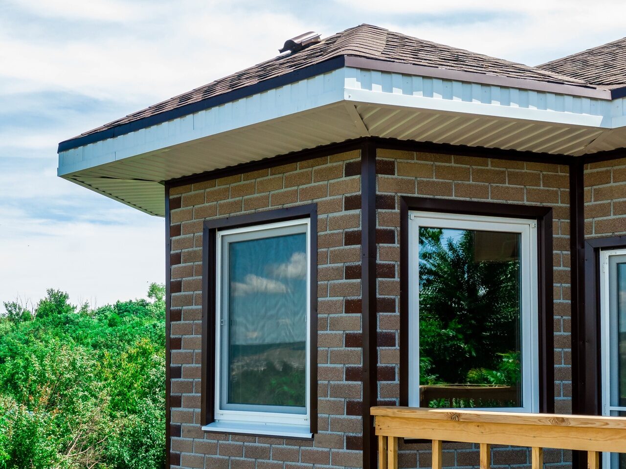Кровельные свесы подшиваются декоративными софитами из винилового сайдинга.