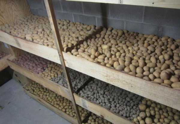 Лучше всего картошка хранится в деревянных ящиках или закромах — они хорошо вентилируются. Ящики с овощами не рекомендуется ставить на землю, лучше на деревянную подставку, которая позволит приподнять тару сантиметров на 20 над землей.