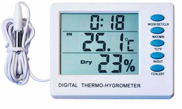 Хорошим помощником в процессе регулировки температурных норм в подвале является градусник. Он может быть электронным, на дисплее которого показатели высвечиваются автоматически, или спиртовым. Лучшим вариантом является установка психрометра, который фиксирует ещё и уровень относительной влажности. К слову сказать, эти два показателя являются довольно существенными. Например, оптимальные условия хранения картофеля: 20С – 50С с относительной влажностью от 85 до 95%. Если влажность будет ниже, картофель будет засыхать, выше, то начнётся преждевременное прорастание и процесс гниения.