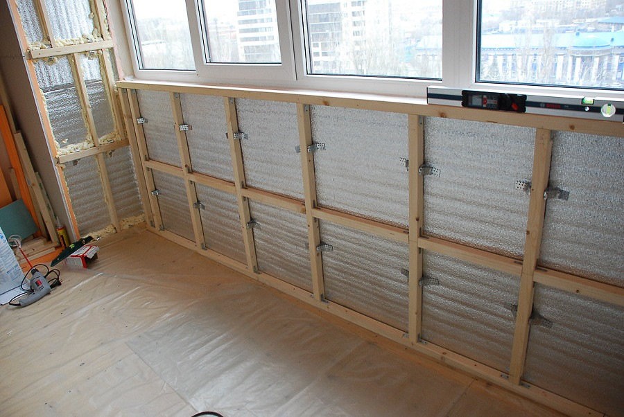 4. Теплоизоляция стен. После того, как все швы, трещины и неровности были тщательно заделаны, можно приступать непосредственно к утеплению стен балкона. В качестве теплоизоляционного материала чаще всего используются следующие его виды: