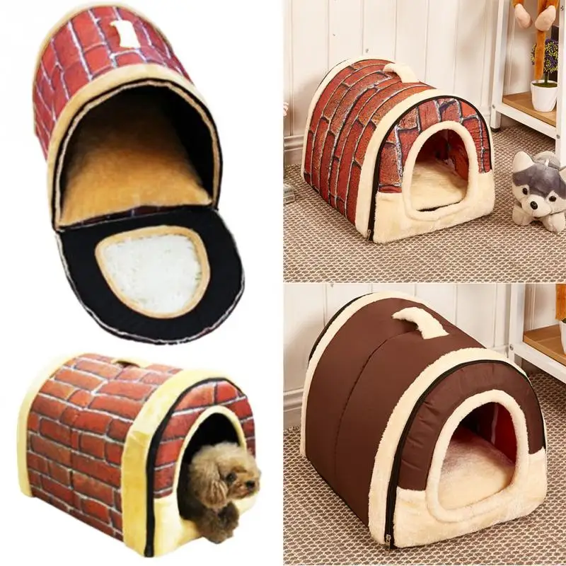 Мягкий домик для домашних питомцев Portable Dog House тёплый лежак для собак и кошек Коричневый BRW